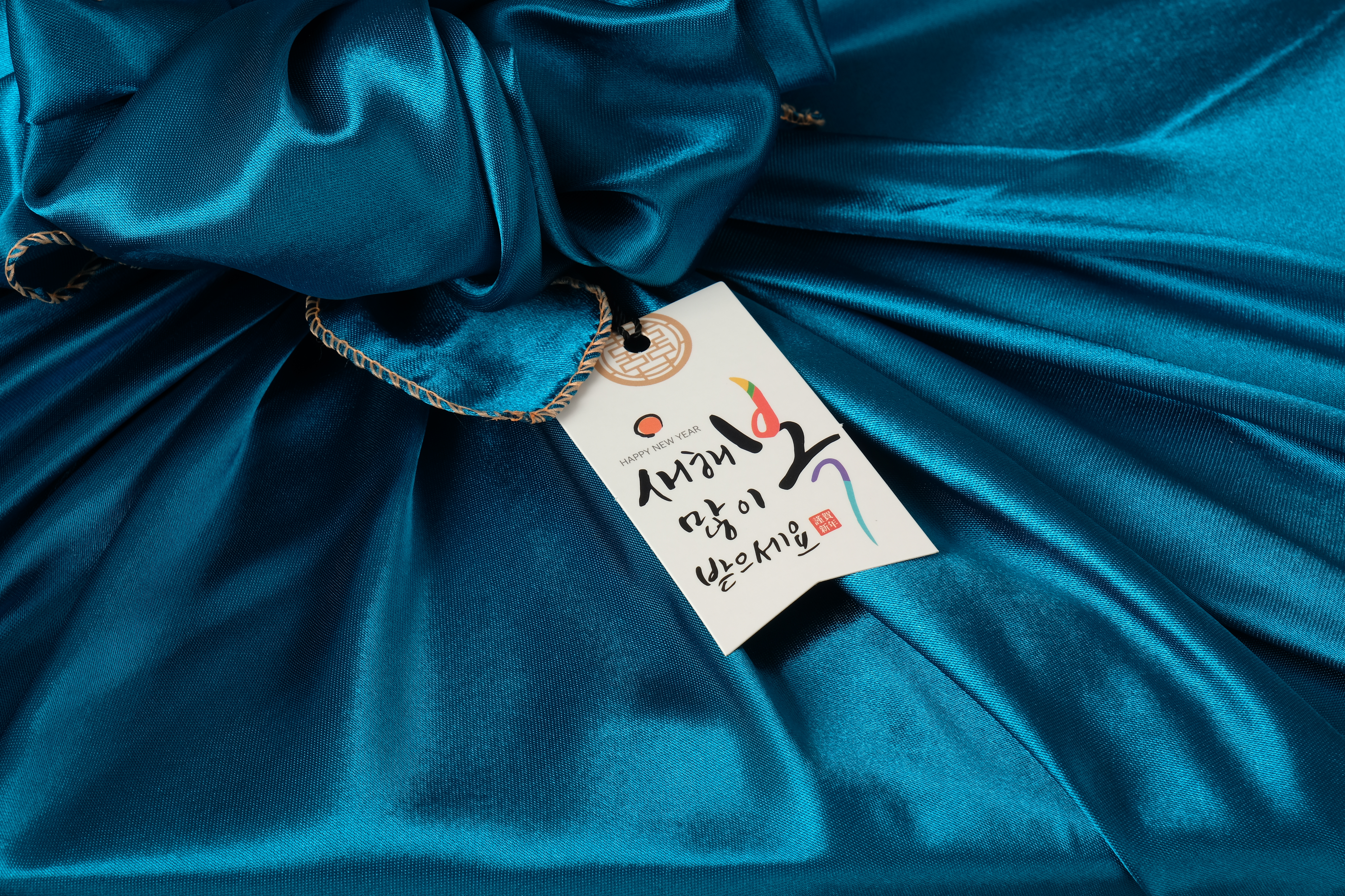 명절메세지를 담은 태그와 함께 예쁘게 보자기 포장 해드려요~